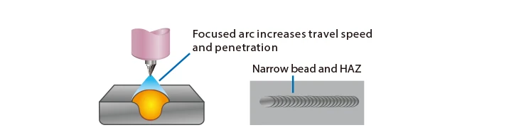 100 импульсов в секунду (PPS) и выше помогают сфокусировать дугу или увеличить стабильность, проплавление и скорость перемещения. Повышенное перемешивание ванны улучшает микроструктуру сварного шва.